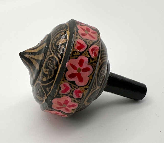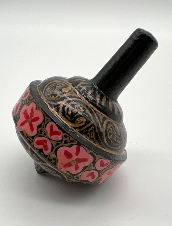 Der dekorative, bunte Kreisel "Kashmiri" ist ein echtes Kunstwerk aus Pappmaché. Handbemalt und lackiert, bringt er Farbe und Bewegung in Dein Zuhause. Ob als Dekorationsstück oder Spielzeug – dieser Kreisel mit einer Länge von 6 cm und einem Durchmesser von 4,5 cm, ist ein Unikat und zeugt von der meisterhaften Arbeit indischer Kunsthandwerker*innen unseres Handelspartners ASHA.