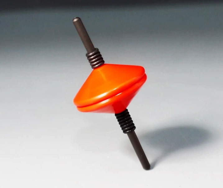 Der mehrteilige Kreisel steht aus zwei einzeln andrehbaren Teilen, die jeweils mit einem fest eingebautem Ringmagneten ausgestattet sind. Man muss allerdings in der Lage sein einen Kreisel überkopf anzudrehen. In Ruheposition können die Teile auch gut getarnt als Magnetpins eingesetzt werden. Als Geschicklichkeitsspiel funktioniert der Kreisel so: ein Kreisel wird auf dem Stiel angedreht und man versucht den anderen Kreisel drehender Weise darauf zu platzieren.