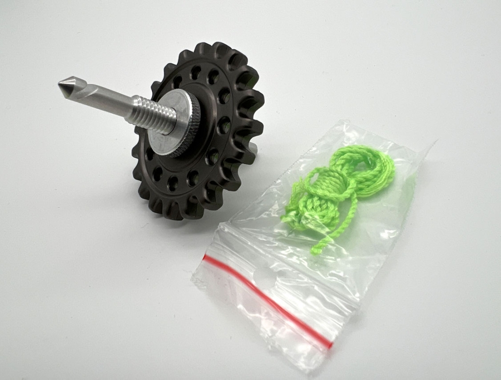 Dieses Model ist zerlegbar. Als Schwungkörper dient ein Aluminiumrad verwendet und als Aufhängung dient eine Häkelnadel.