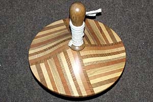Riesenkreisel aus verschiedenen Hölzern, schichtweise verleimt