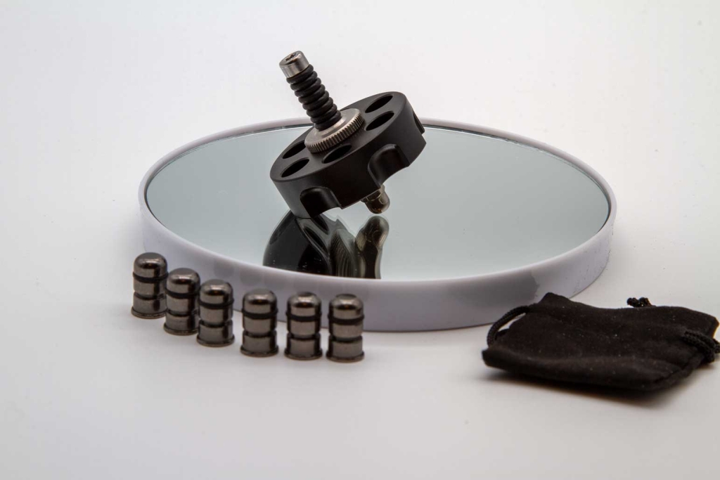 Durch das Einsetzen oder Entfernen der Patronen lässt sich das Gewicht variieren und damit auch die Drehdauer beeinflussen. Der Kreisel ist zerlegbar, sodass der Kreiselkörper auch umgedreht montiert werden kann.